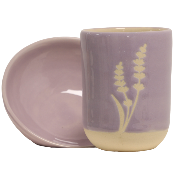 Copo e Prato de Cerâmica – Lavanda